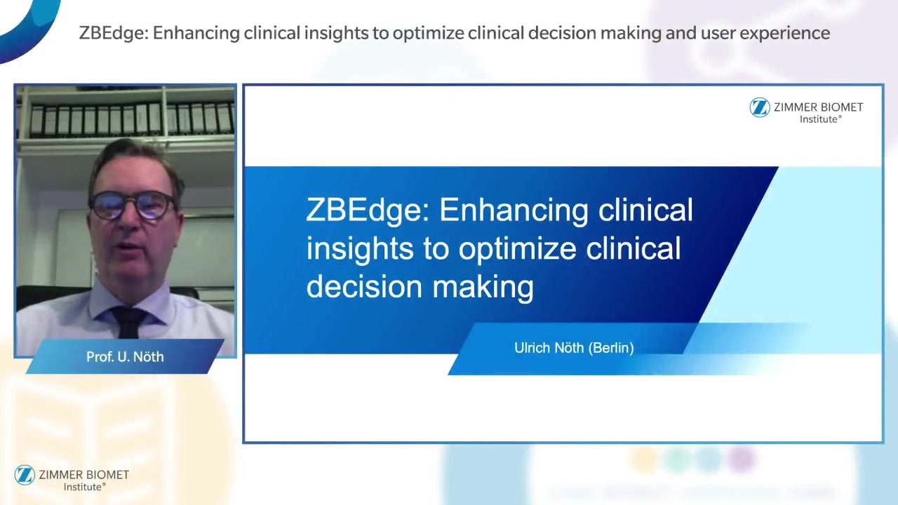 The presentation by Ulrich Noeth introduces the Zimmer Biomet Edge, a complete ecosystem designed to support total knee arthroplasty treatment. Located in Berlin, Noeth outlines the innovative features of Zimmer Biomet Edge, including the Rapid Recovery Program which integrates preoperative data from patients using the mymobility app on iPhones and Apple Watches, alongside intraoperative data garnered from robotic surgery through the ROSA system.